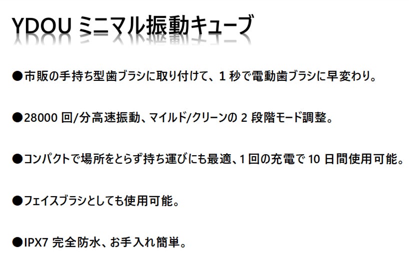 従来の手持ち歯ブラシを、自分だけのカスタマイズ電動歯ブラシに変身させてしまうミニマル振動キューブ「YDou」。
