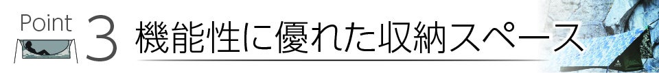 さらにガイラインを使ってバックパックを内部に吊るすこともできるので、常に必要なツールを手が届く場所に置いておくことができます。