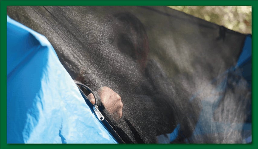 蚊帳部分はファスナーで隙間なく閉じることができます。