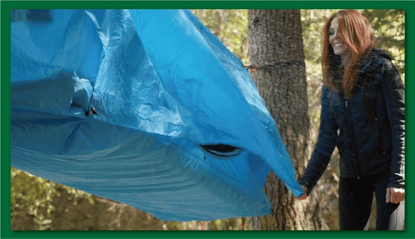 雨に濡れてもフライシートをサッと振れば大丈夫。