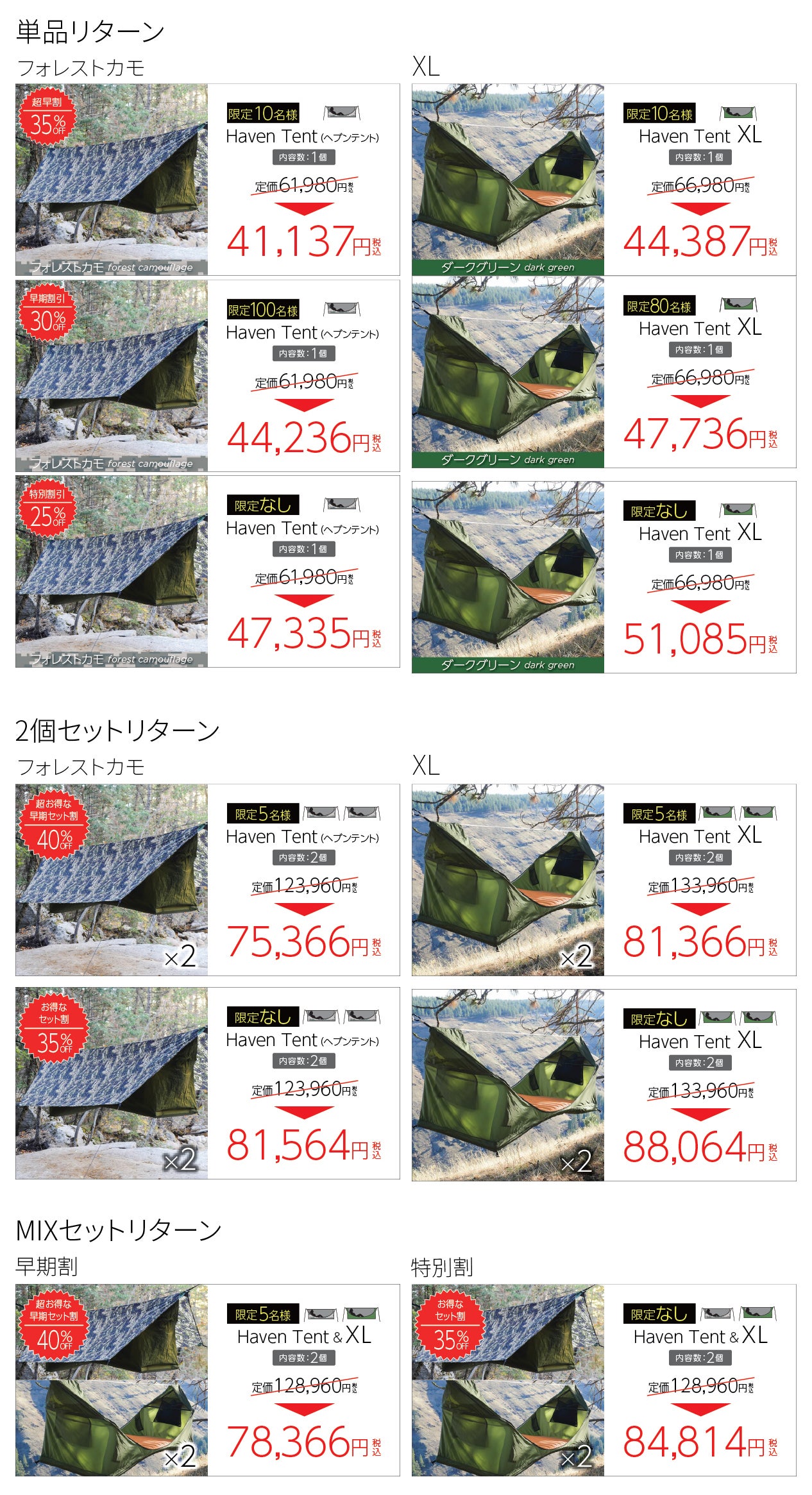 ※havenは理想郷、避難所などの意味です。本来の発音はヘイブンに近いですが、日本人にとって言いやすく覚えやすい「ヘブンテント」を日本の商品名として採用しております。