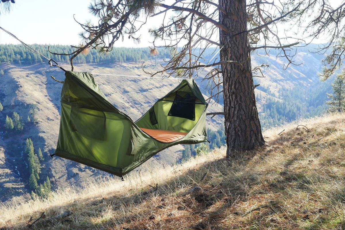 ヘブンテントはフライシートや蚊帳などの機能を備えているので、テントがなくてもこれ一つでキャンプはOKです。