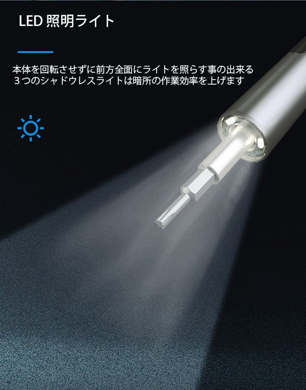 ボタンをクリックするだけでLEDライトが点灯するため暗い場所や見えにくい場所での作業もはかどります。