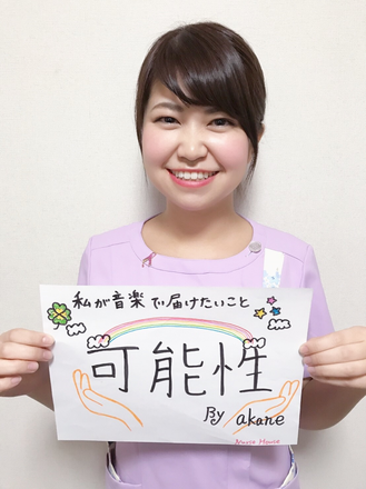 *可能性* akane看護師✖️保健師✍️ あなたは今、克服しようとしていること、頑張りたいこと、成し遂げたいこと…ありますか?進もうとするときには必ず壁があり、時には挫けそうになったり、弱音を吐きたくなりますよね。そんな時に音楽の力で、少しでも癒やしや元気を届けられればと思います(^ ^)わたしは努力や夢は思い続ければ必ず叶うと、信じています。あきらめないで。どんなときも、自分の可能性を信じて進んでいけますように。✨ ☂️日々患者さんと向き合っている看護師ですが、病気を患われて医療が必要な方はもちろん、心身への予防的介入やさらに健康を増進させる役割も担っています。今回CDプロジェクトを通し、普段の看護ケアをにプラスし、「音楽の力」をかりて 目に見えないケアができればと思います。 看護師の持つ知識、熱意を掛け合わせれば、【可能性】は無限大と信じます☺️✨ 今回、全国に音楽の力を届けることはもちろん当団体の主活動である看護師+αナースによる「あなたの身近なナースステーション」活動を全国へ広げて行きます♪ 引き続き応援よろしくお願いいたします(๑˃̵ᴗ˂̵)❣️