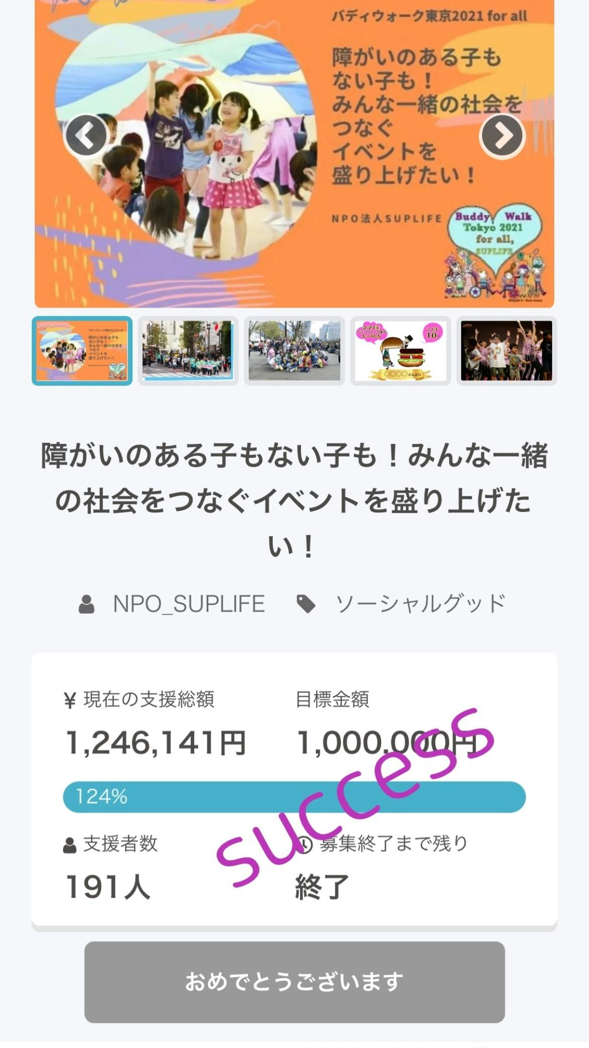 3月10日23:59 NPO法人SUPLIFEによる「BuddyWalkTokyo2021forall」クラウドファンディングが終了しました事をご報告させていただきます。