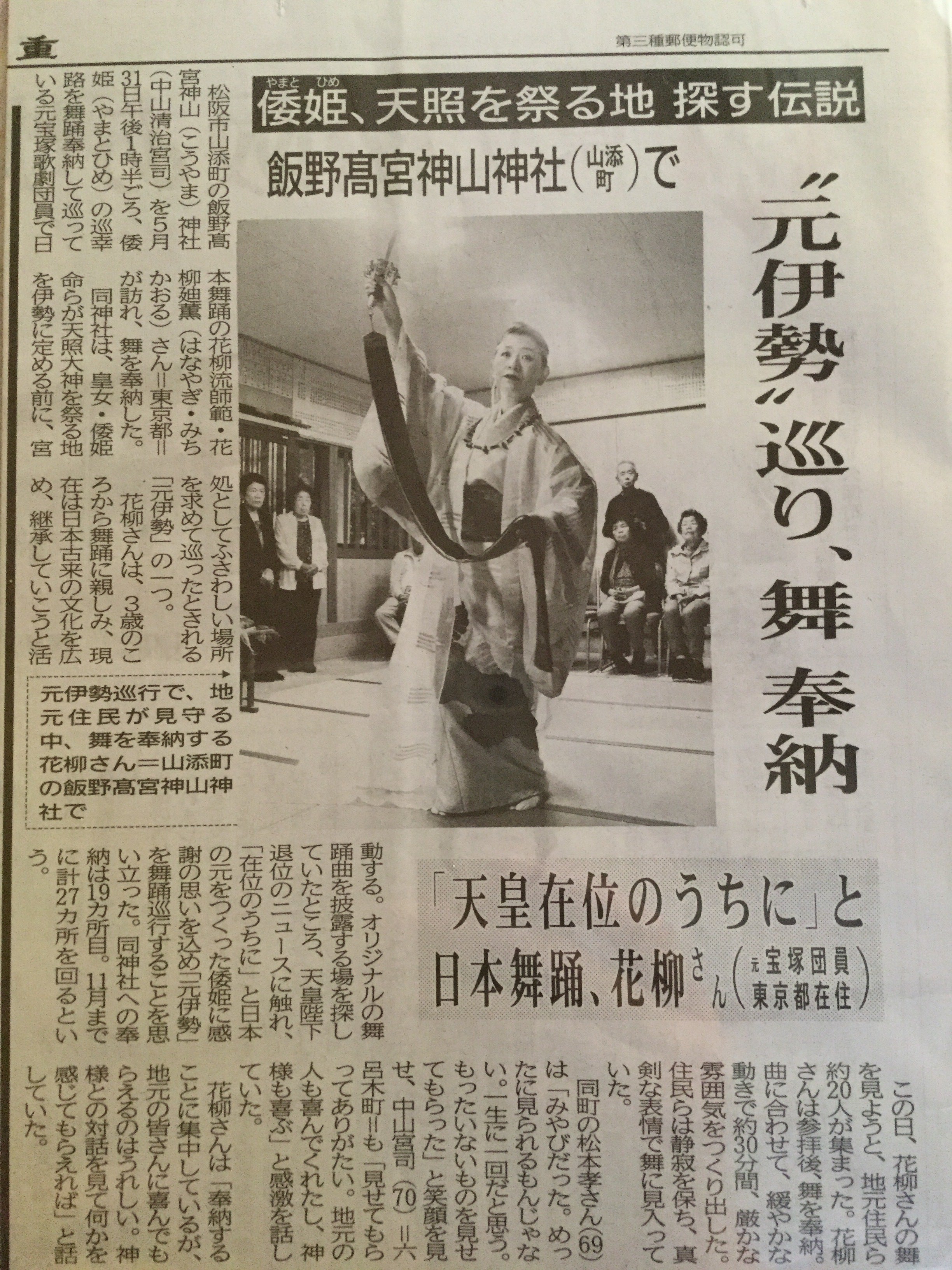 先日奉納で訪れた時、取材に来られていた地方紙 夕刊三重に記事が載りました。 大きく取り上げて頂き恐縮です。ありがとうございます。