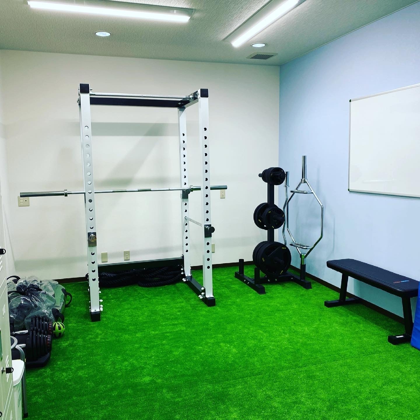 2021/02/22 13:00だんだんジムらしくなってきました!人工芝の張り替えトレーニング器具の組み立てあとは、備品や小物を揃えて行けば完成です! もっと見る