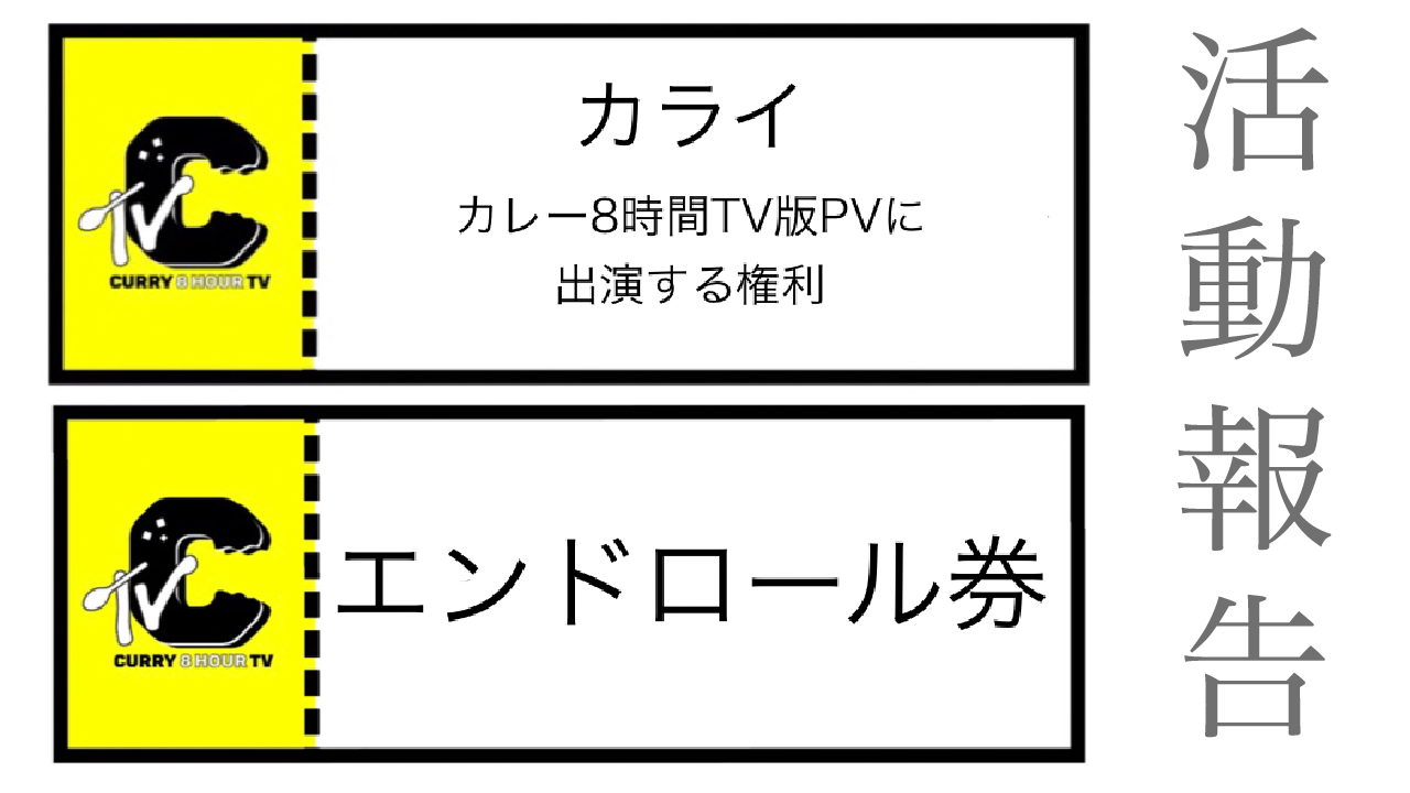 番組配信後、テーマ曲「カライ」のPVを作る予定です。そのPVには、皆さんがカレーを食べる動画で構成し、YOUTUBEにアップしようと思っています。詳細はクラファンサイトのリターン品をチェック!