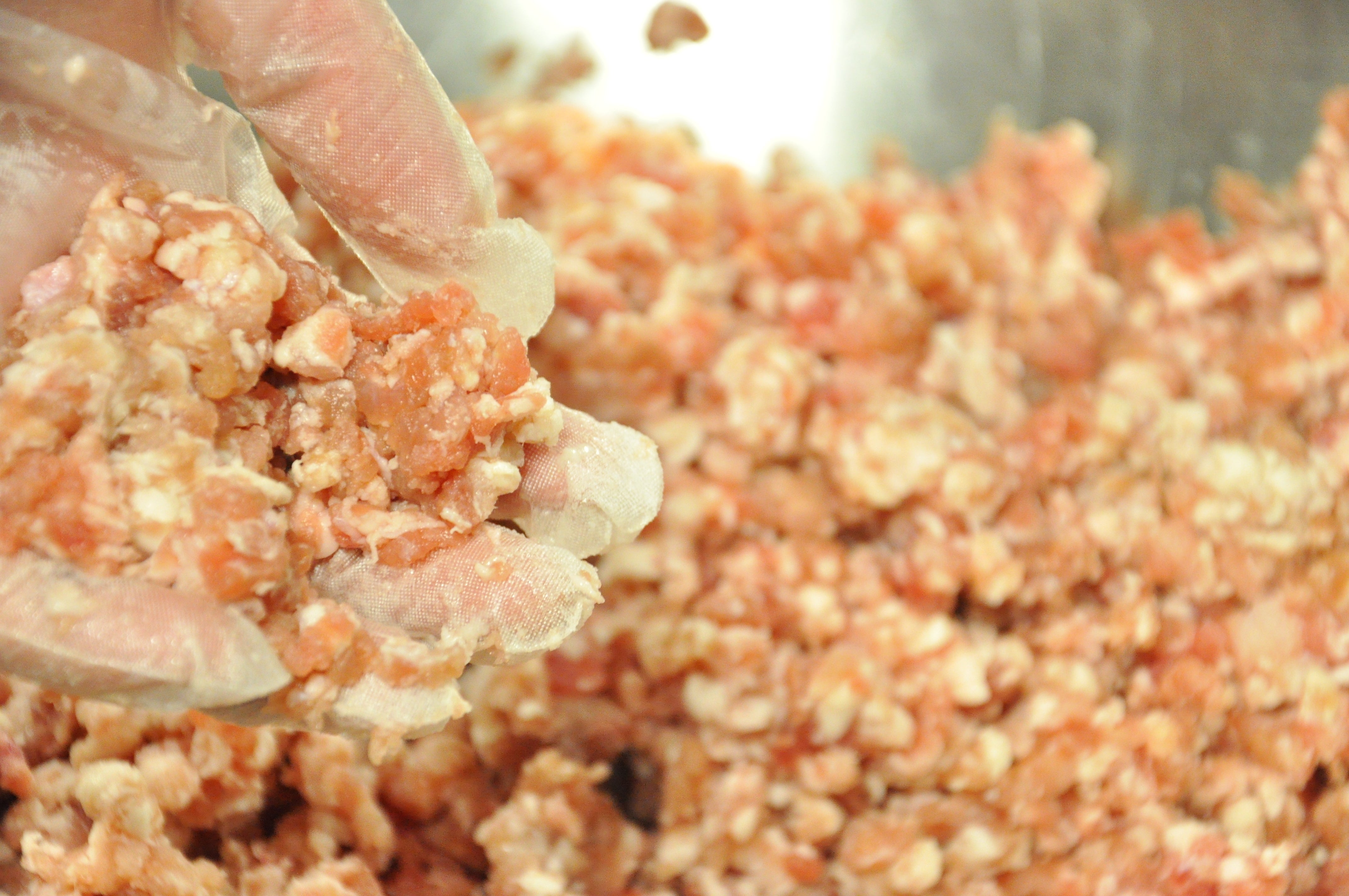■こだわり8 国産三元豚の粗挽きミンチを使用