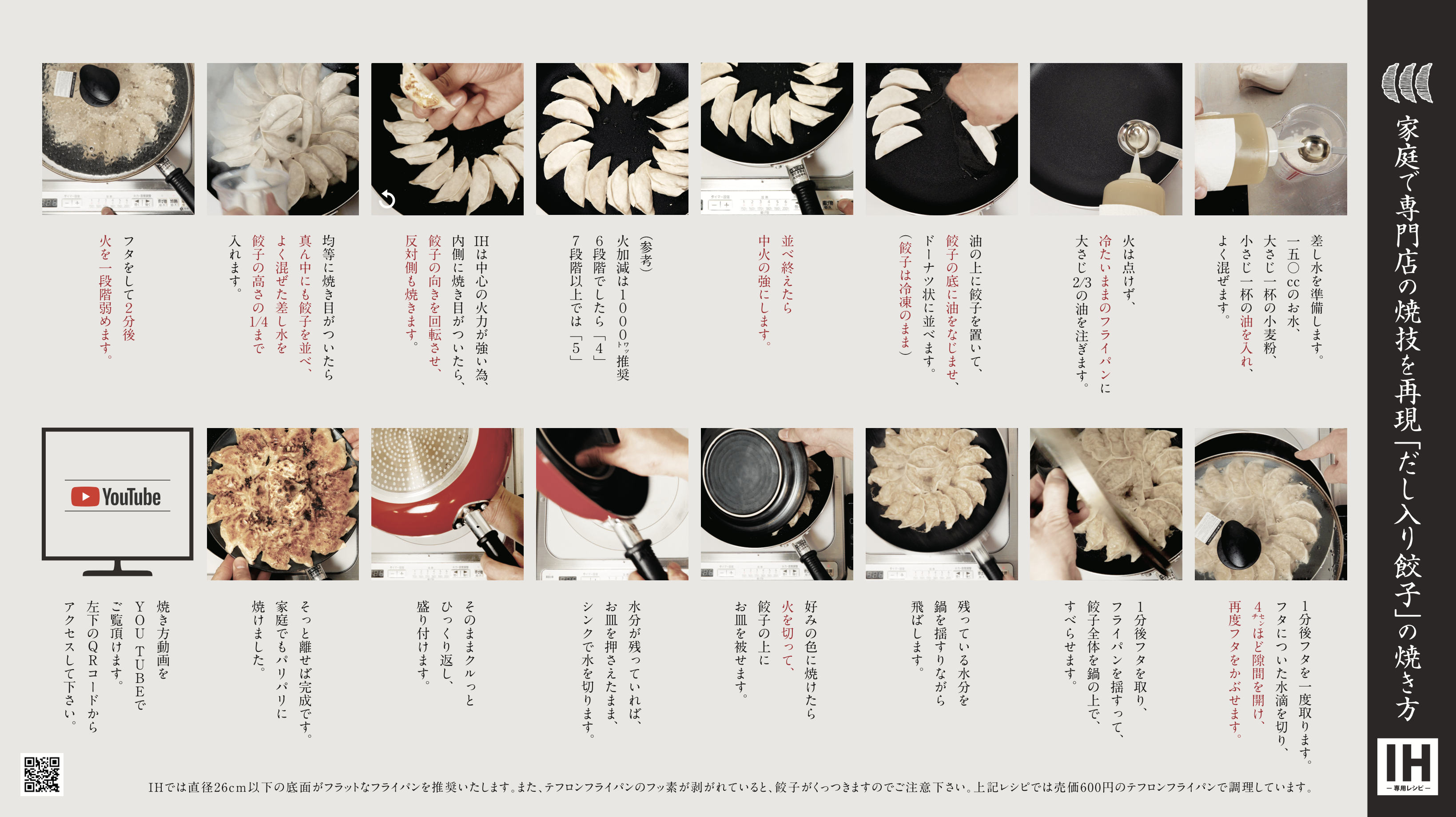 餃子屋本舗では、常時 17種類の餃子を提供しています。このプロジェクトでは、定番の「超うす皮だし入り餃子」をはじめ、家庭で美味しく食べられる 6種類の餃子をご紹介しています。