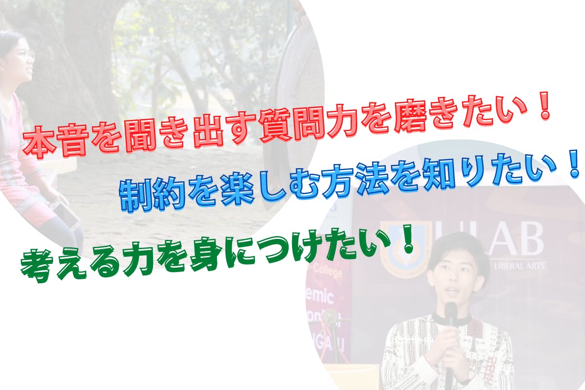 この講座では、問題の本質を聞き出す力を養うことを目指しながら、「なぜと聞かないコミュニケーション」の方法を学びます。バングラデシュでの活動を通して痛感したことは、現地の人へインタビューをしても「何が問題なのか」まったく分からなかったことでした。この理由は簡単で、現地の人ですらなぜこの問題が生じているのか分からないからです。