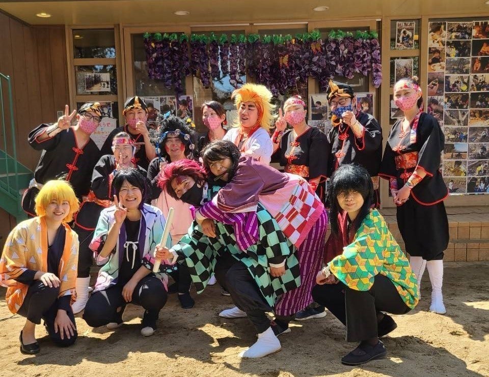 卒園は職員が人気キャラに!!(中央の女の子が園長)