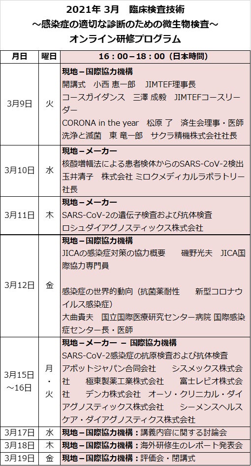 これらの課題解決を視野にこれまでの研修内容をさらに改善し、PCR検査法をはじめとする遺伝子検査法、抗原検査法、抗体検査法など一層充実した研修コースを本年3月から実施しています。