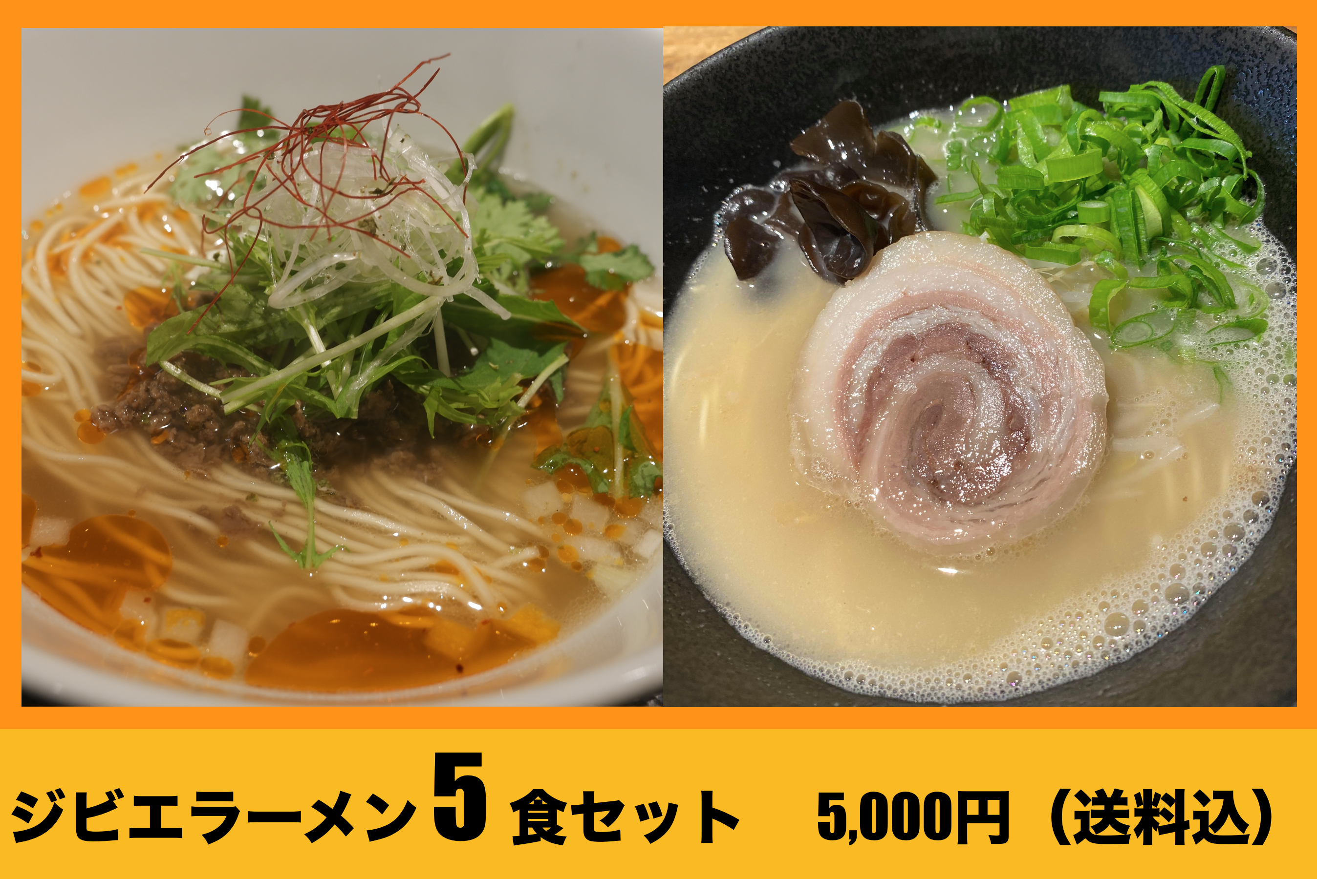 ①ジビエラーメン5食セット:5,000円(送料込)