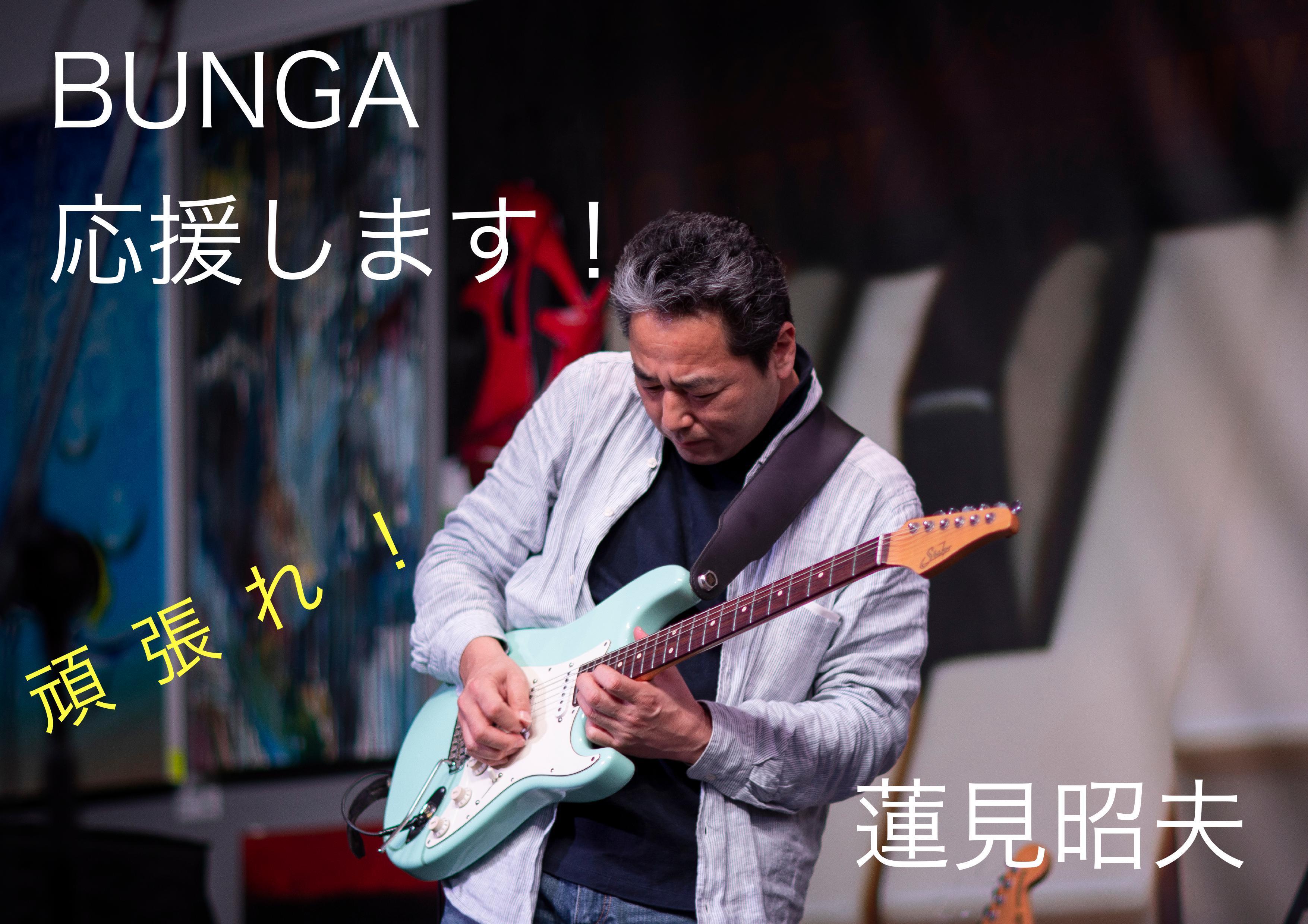 いつも楽しく演奏してきたBUNGA応援します!このお店ではminaさんとのデュオの他にも昨年亡くなられた国民的ロックバンド『ゴダイゴ』のギタリスト浅野さんとのライブも忘れられない想い出です。又、ここで知り合ったお客様も良い方ばかりでした。幾度と自分にとっても大切な時間を提供してくれたBUNGAの継続を心から願っています。頑張れ!BUNGA