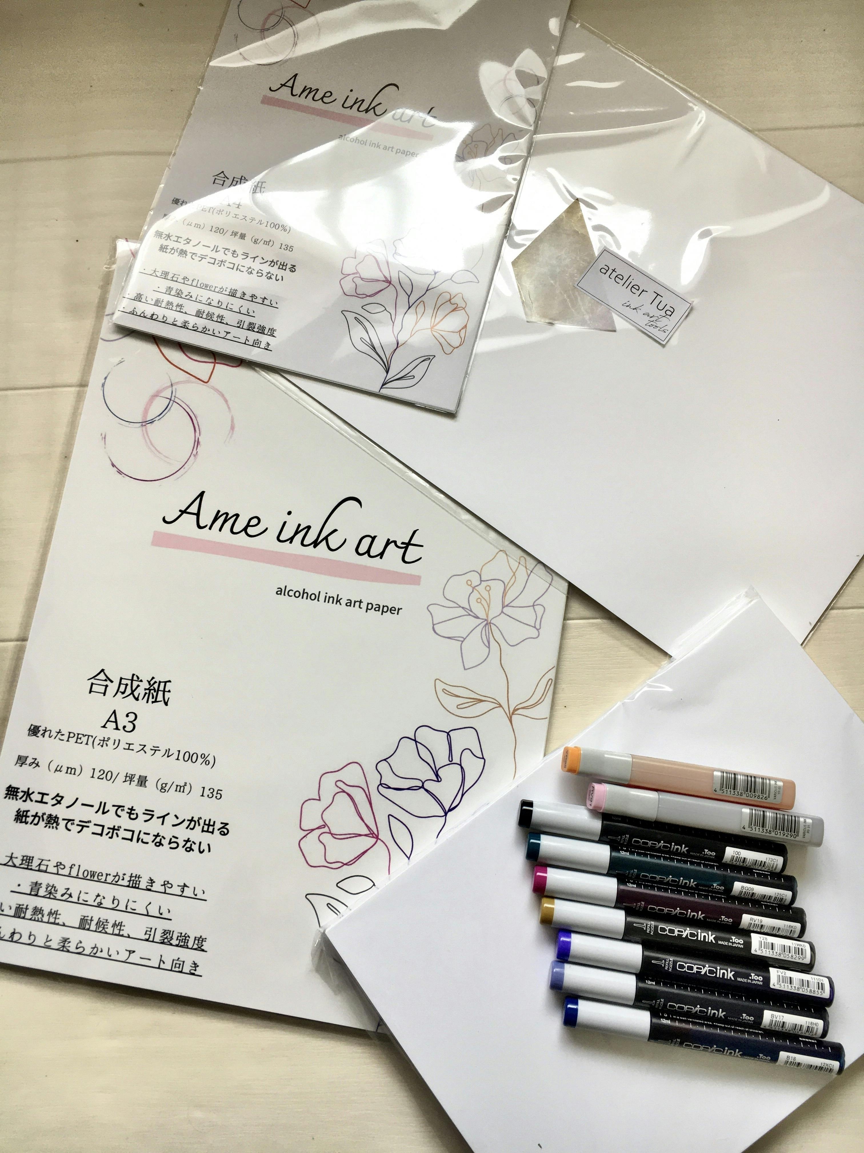 アルコールインクアートと出会った当初、道具は何を使うのか、どこで手に入るのか、あまり情報もなく色々試しては失敗ばかりでした。