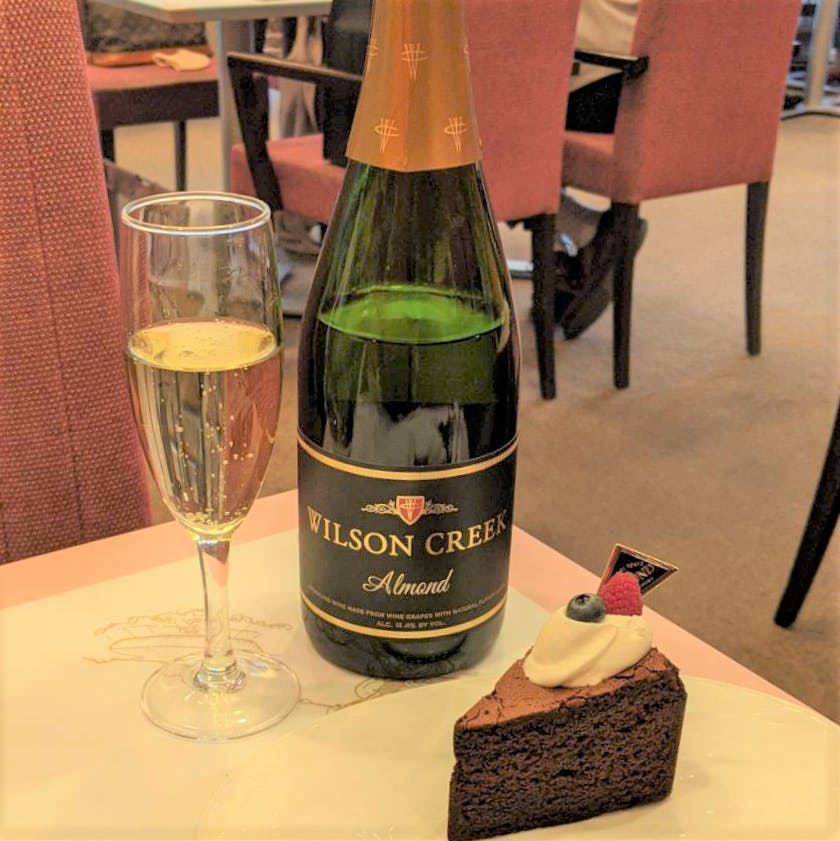 今日~明日までの営業時間中の期間、店内でご飲食の先着100名様に限り、無料でアーモンドスパークリングワインの試飲ができます。