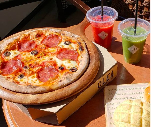 OLEAのパンは安心の国産小麦100%。おやつパンからご飯まで種類は常時40種ほど揃えています。アレルギーがあるお子さんでも安心して食べられるよう、卵・乳フリーなどのパンも作っています。パンの他にも石窯ピザやドリンクなど、大人も満足できるようなメニューもたくさんご用意しています。