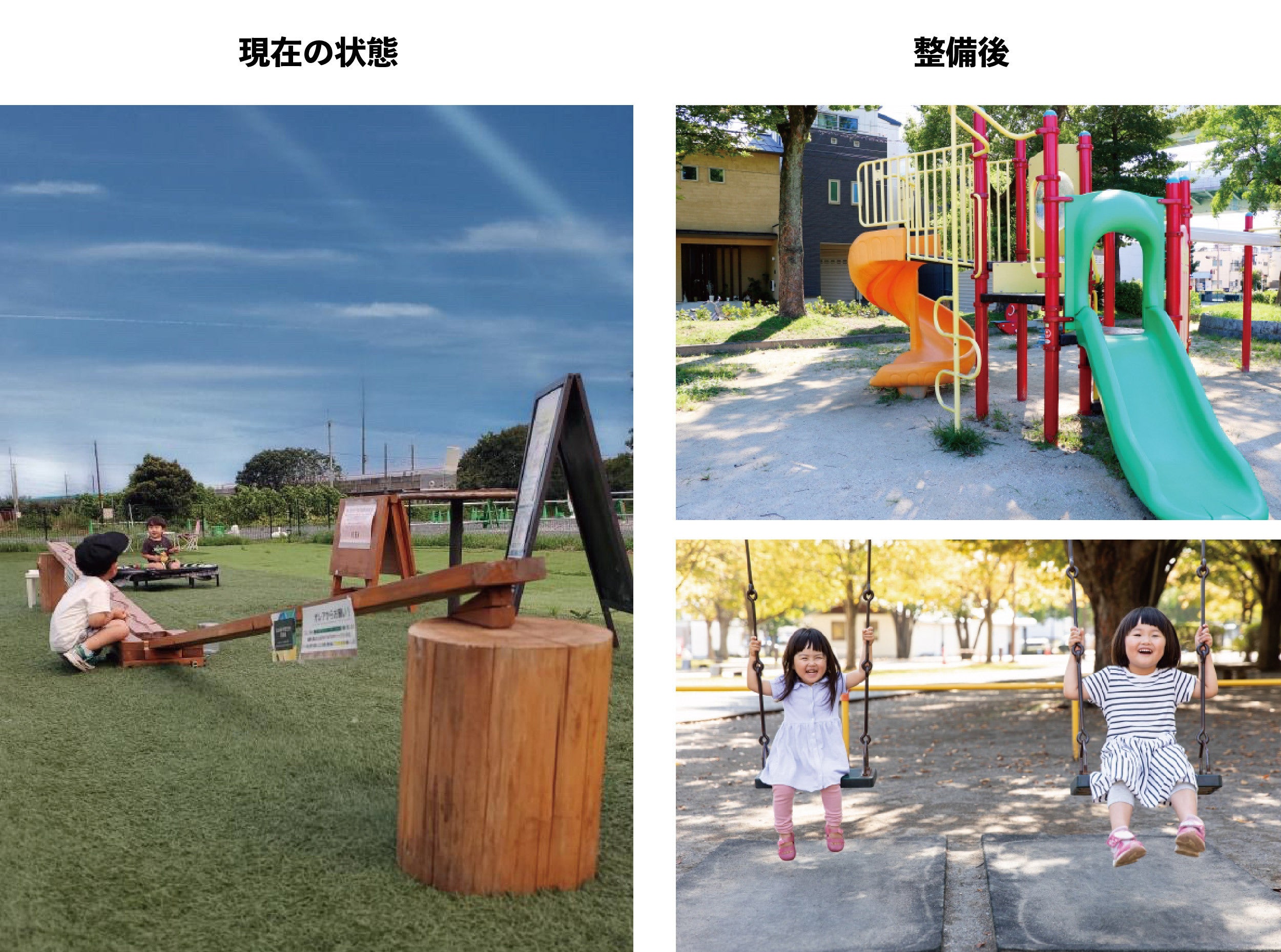 そしてOLEAの前にあるのが今回プロジェクトで改装するOLEA PARK。「こどもたちがもっと元気に遊べる場所が欲しい!」と元々畑だった場所をなんども交渉し借りることができました。