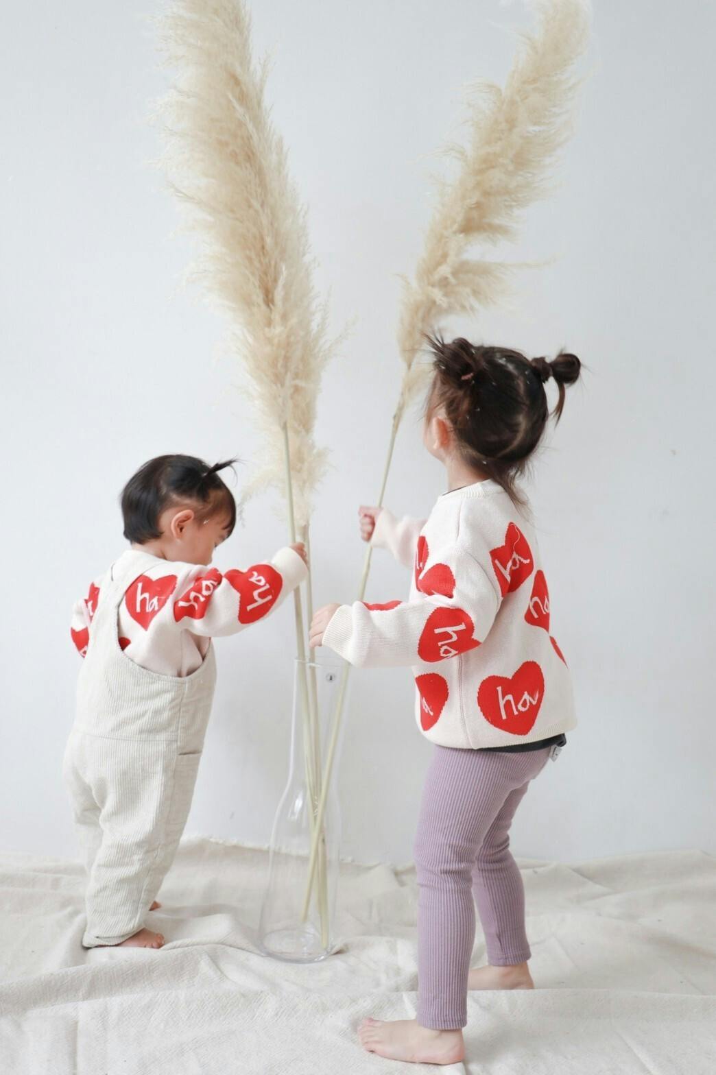 パッと目を引く可愛らしいハートのモチーフ!ベースが白なので派手すぎずお顔がパッと明るくなるような可愛らしいニットです!ゆるすぎずフィットしすぎず何に合わせても主役になる
