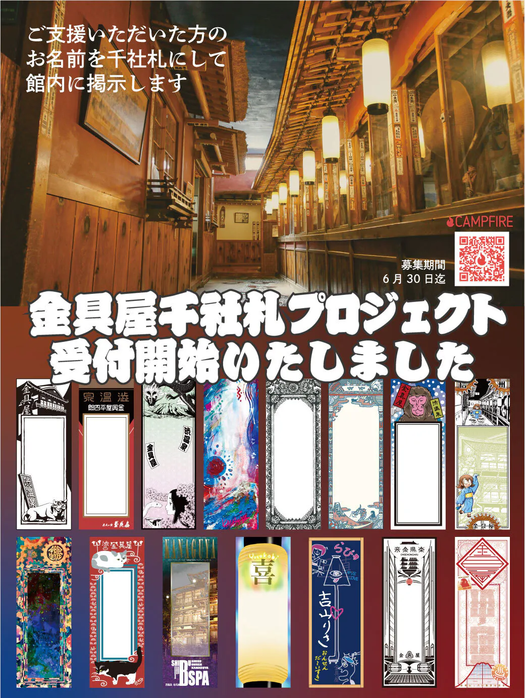 第1期にご支援をいただいたみなさまの館内貼付を当初5月31日までとしておりましたが、第3期のスケジュールの変更により、6月末までの貼付とさせていただきます。7月中に順次第3期のものとの貼り替えを行い、8月1日からは新しい札に変更となります。残りわずかとなりますがどうぞよろしくお願い致します。