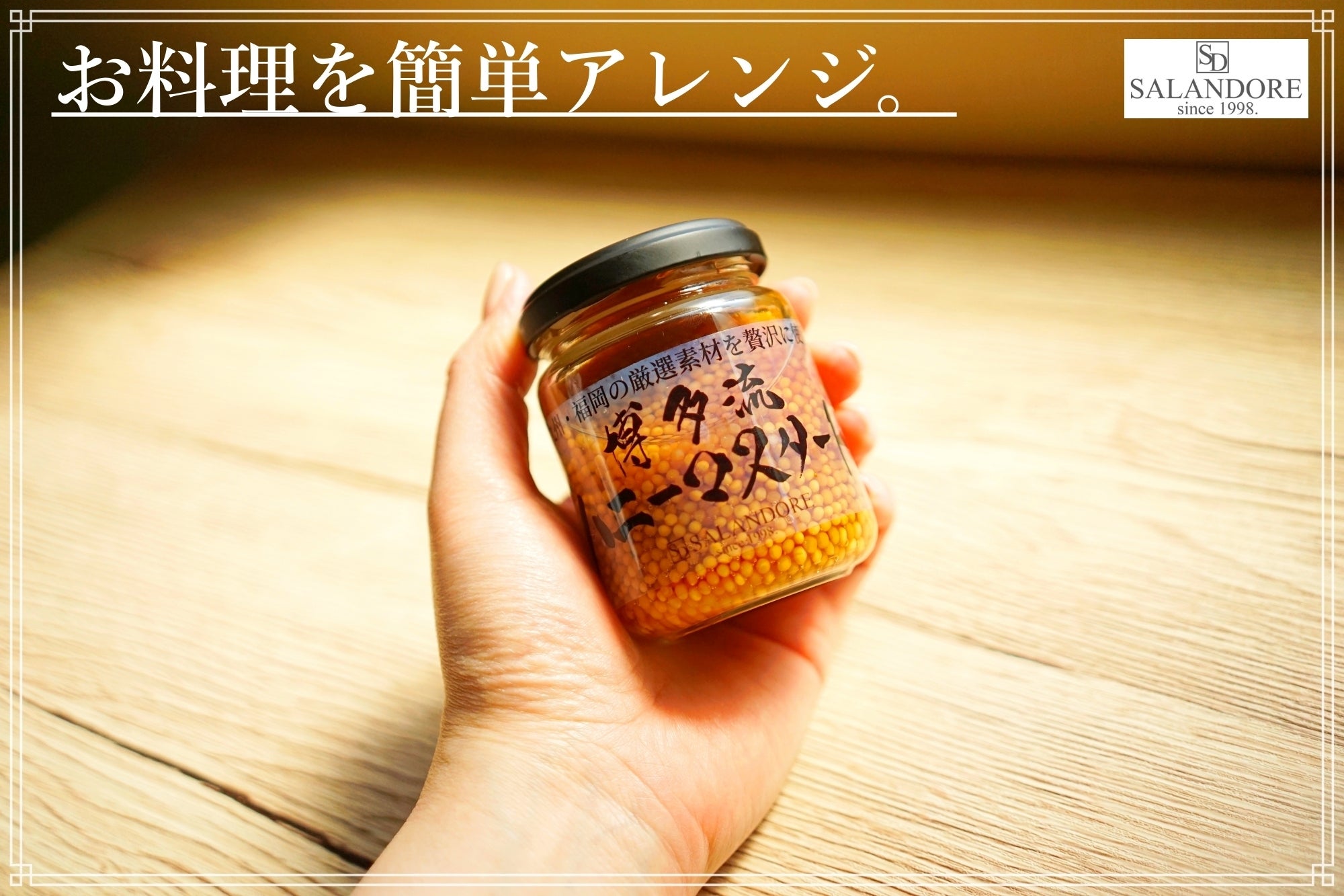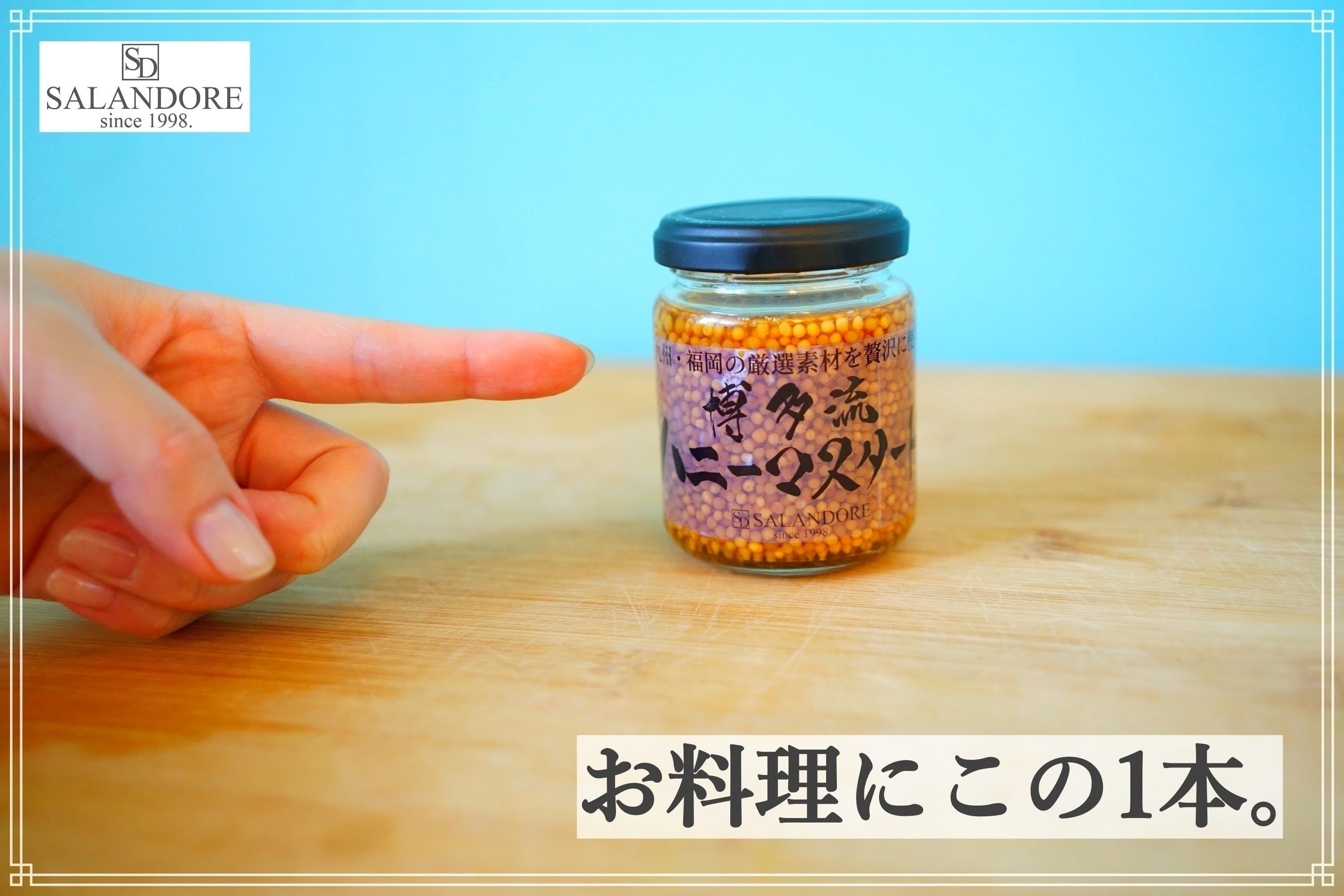 かけるだけでワンランク上のお料理になる博多流ハニーマスタード。食感と深い味わいを楽しみながら、様々なお料理にご活用ください。