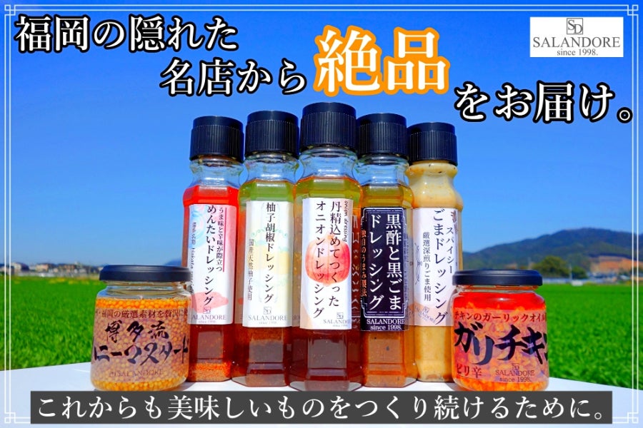 SALANDORE(サランドレ)は、1998年10月に福岡にて創業以来、様々な美味しいもの、他にはない面白い商品を開発、製造して参りました。