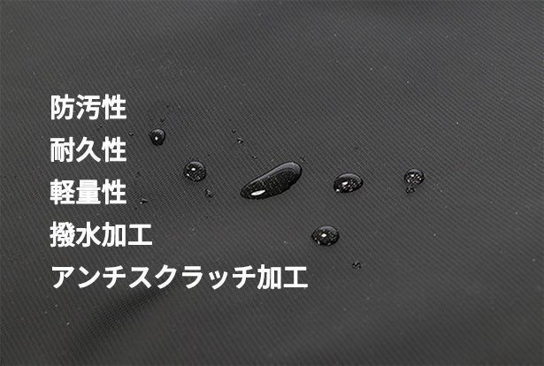 Toothpick Grain Tarpaulin素材は、アンチスクラッチ加工で折り目が目立ちません。 軽量性、防汚性、耐久性があり、摩擦や引裂にも強く、撥水加工もされており、雨の日でも気にせず使用できます。