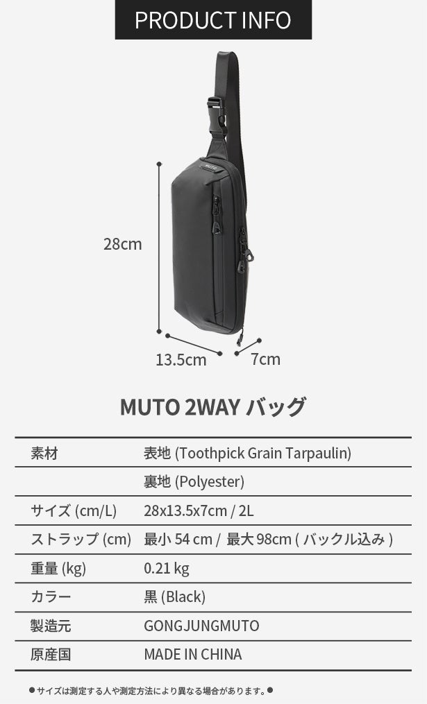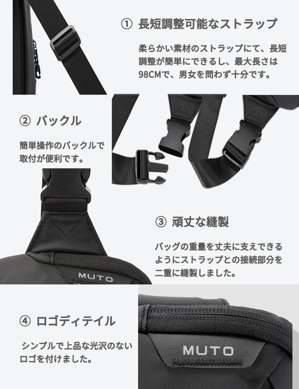 「MUTO 2WAY スリングバッグ」がそのお悩みを解決します!軽量でコンパクトなデザインで旅行や出張&お出掛けの際に、手軽に物を取り出せることもでき、収納力抜群なスリングバッグです。