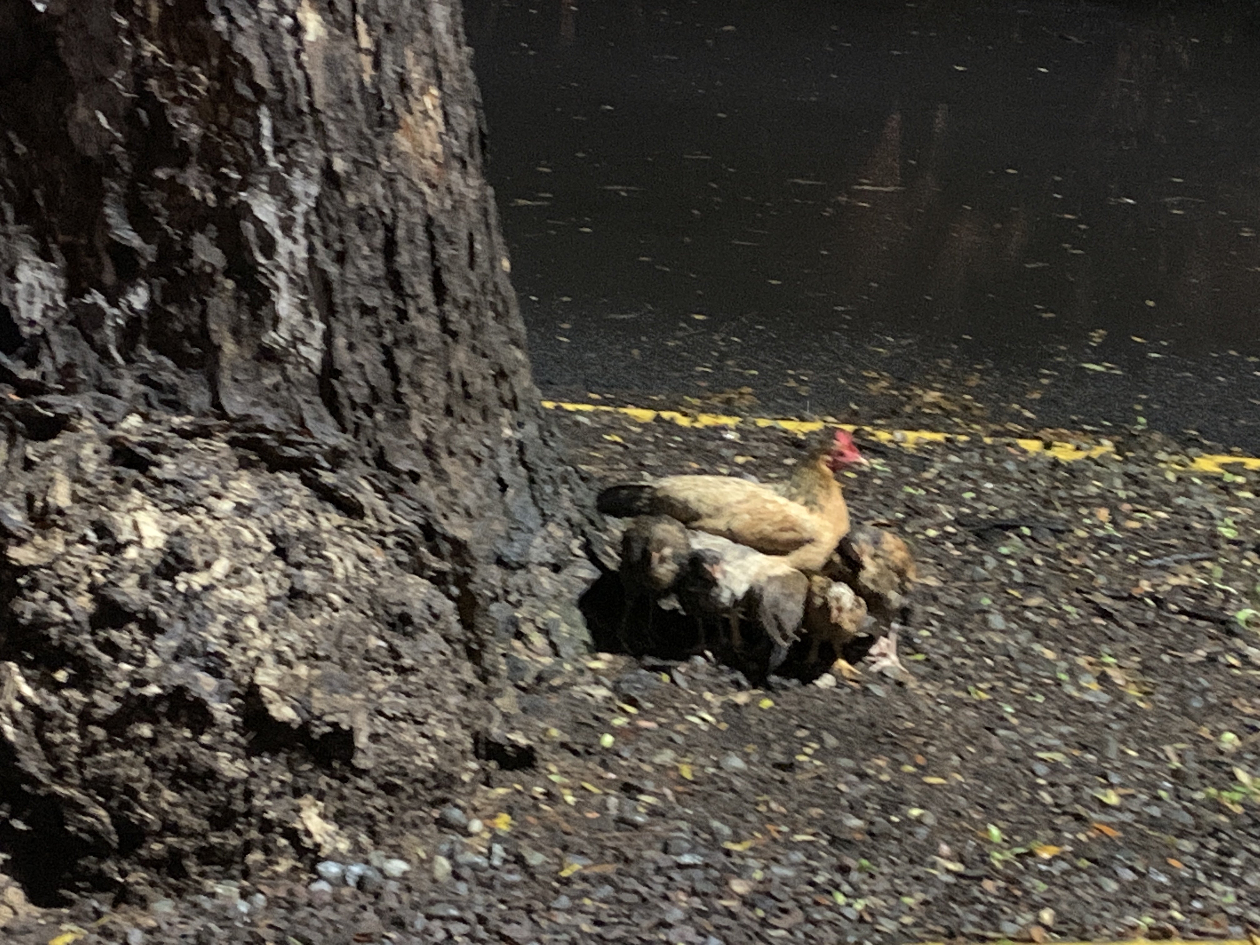 にゃんこ達にご飯をあげて、帰宅途中にモールの中で見つけたなんかの塊。なんだろうと思い近づいてみると、ワイルドチキンの親子が大きな木の下で身を寄せ合って雨宿り。きっと今日はえさも見つけられずお腹も減っているんだろうなあと思い、残っていたキャットフードを撒きました。おー、こんなにたくさんの子供チキンが固まっていたんだね!運河の猫達も、びしょ濡れです。やはり、今日も人類みな兄弟!