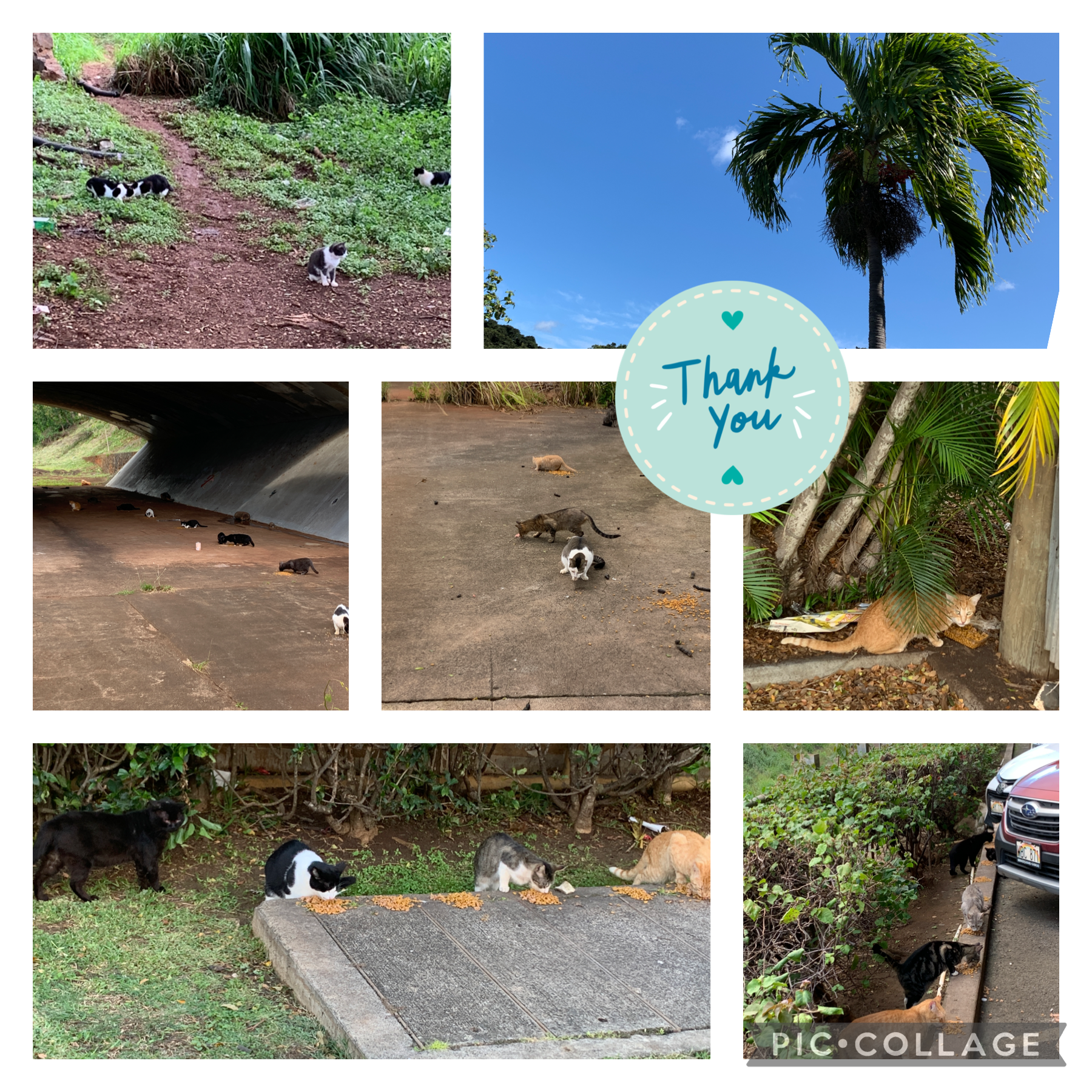 ご支援してくださっている皆様へ!おかげさまで現在100%を突破する事が出来ました!今日は久々にお天気も良くなってきて、モールのニャンコも安心してゆっくりとご飯を食べることが出来ました! BIG MAHALO! ありがとうございます!!