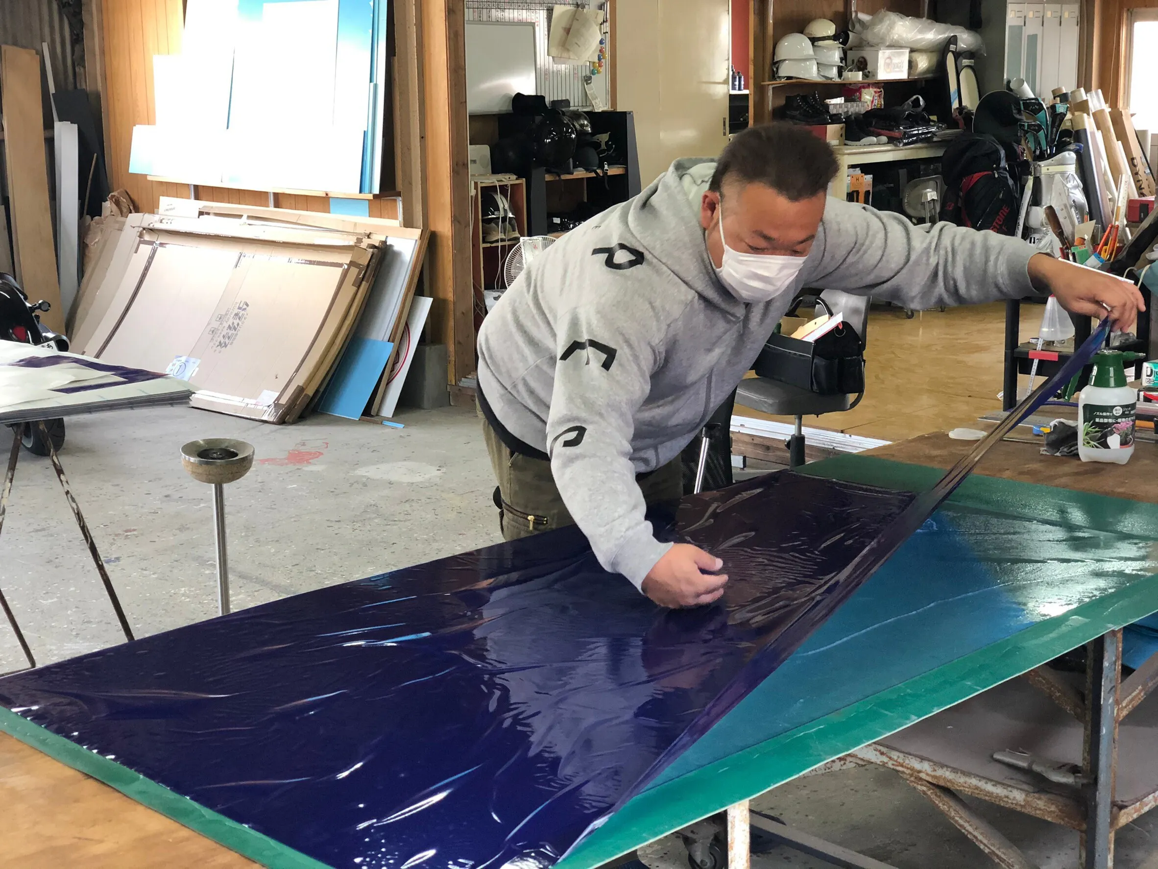 今回、パネルを作成していただいているのは、久留米市梅満町にあります「クラフトあらき」さまです。看板屋さんなので、各種看板はもちろんですが、各種プレートや横断幕の作成、今回のように資材の加工・販売も行ってくださるスペシャリストです。