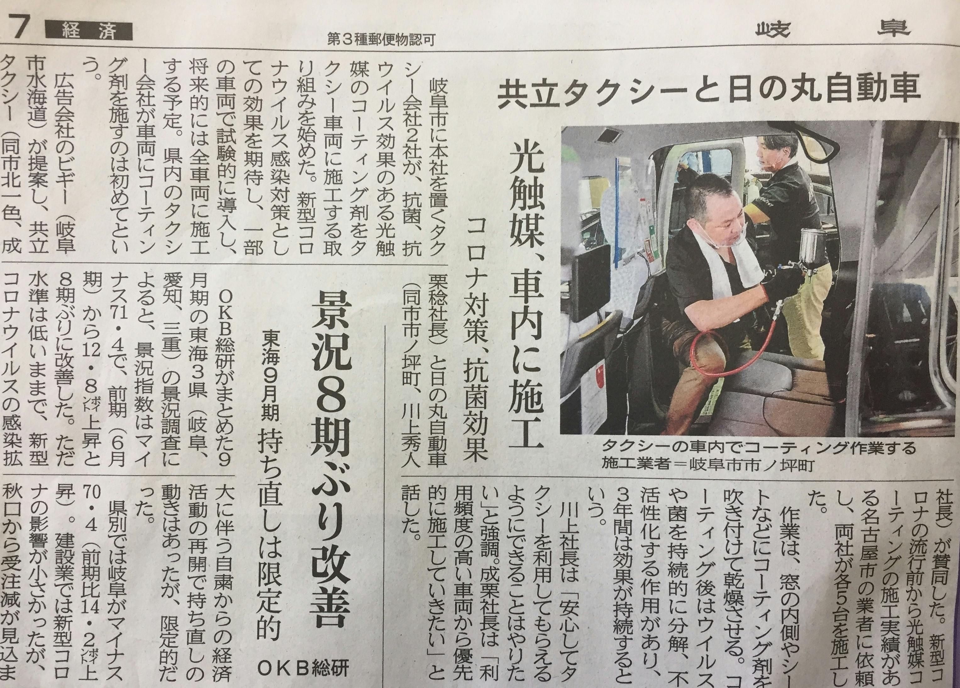 ◼光触媒コーティングタクシー(岐阜放送、岐阜新聞、東京交通新聞にて取材)