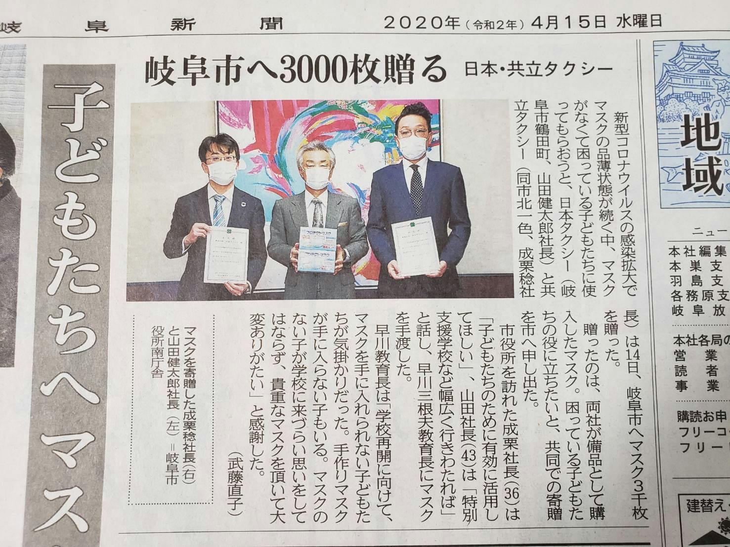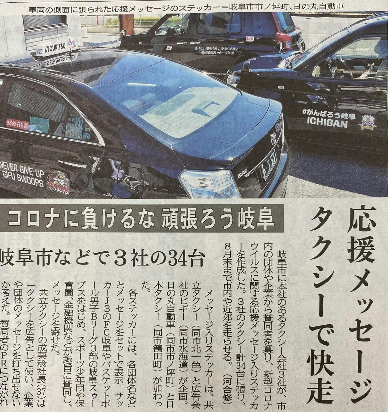 ◼タクシー応援メッセージ(岐阜新聞、東京交通新聞にて取材)