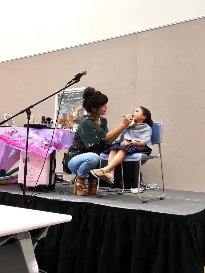 その後、沖縄で開催された『えんとつフェスタ』でメイク教室を開催したり、コミュニティーセンターで赤ちゃんのいるお母さん達と美容の楽しさを共有するため、『ママ大変身大作戦!』と言うテーマでセミナーを開催しました。