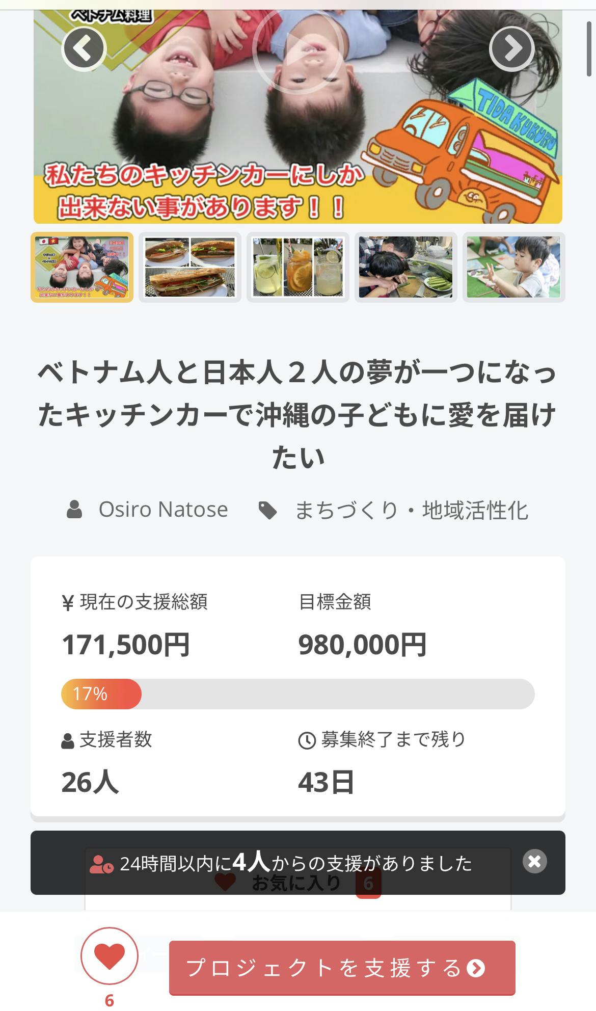 家族・友人・沢山の方々が応援してくださり、5日目で達成率が17%という結果を出すことが出来ました。