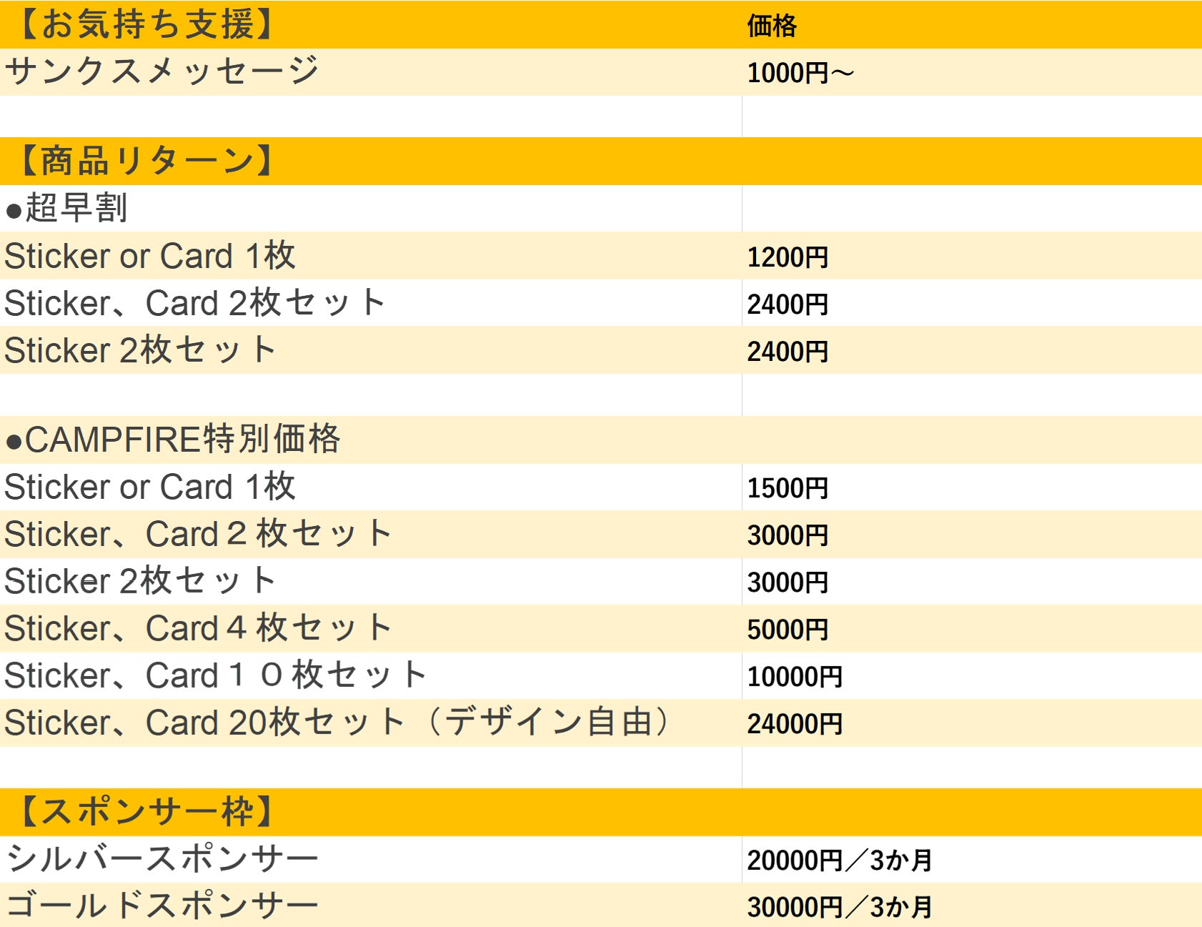 A ご自身のお好きなステッカーを上から張っていただける無地シールと、Designed Sticker2種類、追加リターンとして、お好きなデザインを入れていただけるリターンもご用意致しました!