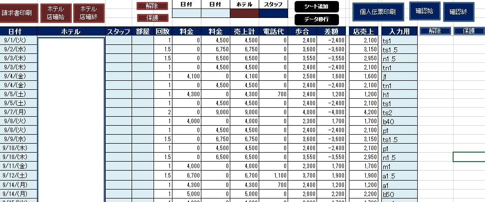 下記画像は、私が実際にマッサージ店から依頼を受け作成したものです。日付の修正、ホテル名、スタッフ名、部屋番号は消去しております。