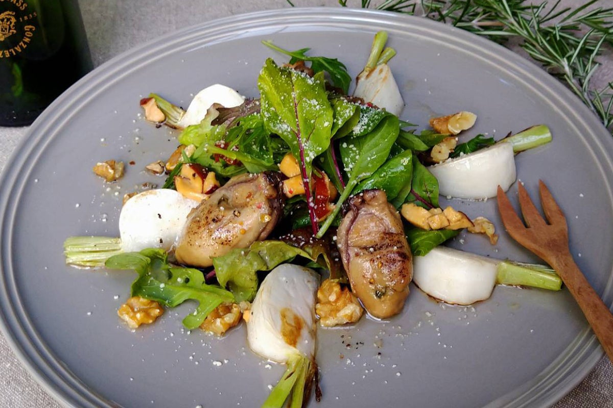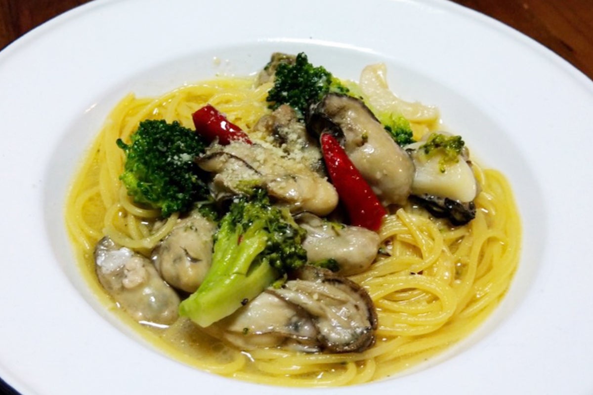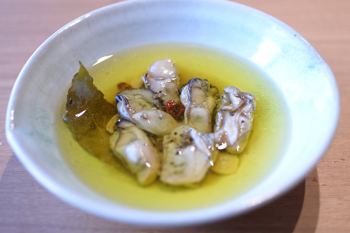 アヒージョは牡蠣をオリーブオイルとニンニクで煮込み、オイル漬けにしました