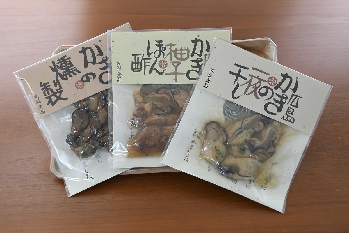 牡蠣の燻製、牡蠣の柚子ぽん酢、牡蠣の一夜干し 4,200円(税、送料込み)