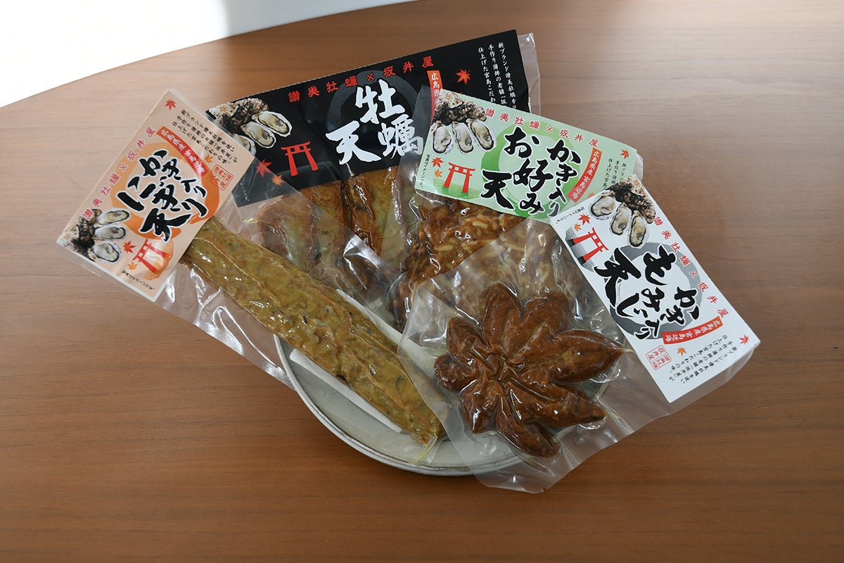 牡蠣のにぎり天、牡蠣天、牡蠣入りお好み天、牡蠣もみじ天 3,600円(税、送料込)