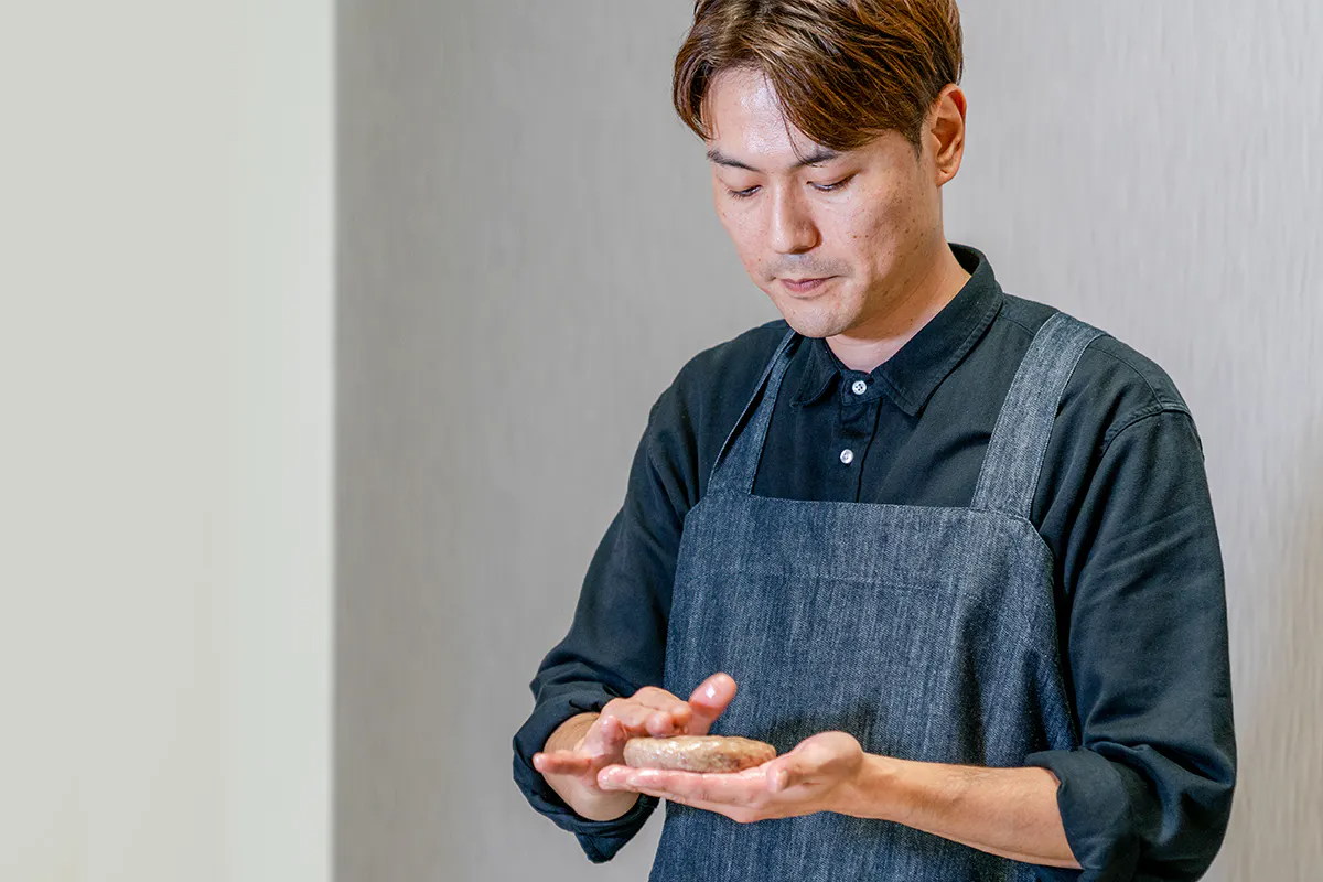いくつもの素材が合わさってできるハンバーグ。 その中での「つなぎ」の役割は、素材同士の “縁結び” だと私たちは考えます。地元福井を主体とした最高の原料を選んで、 一流の素材同士を結び、作り手の想いを結んでいきます。
