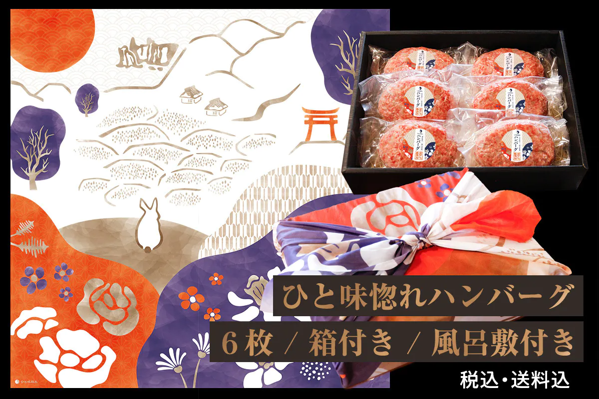 ⑥ ひと味惚れハンバーグ 6枚(箱付き/オリジナル風呂敷付き)