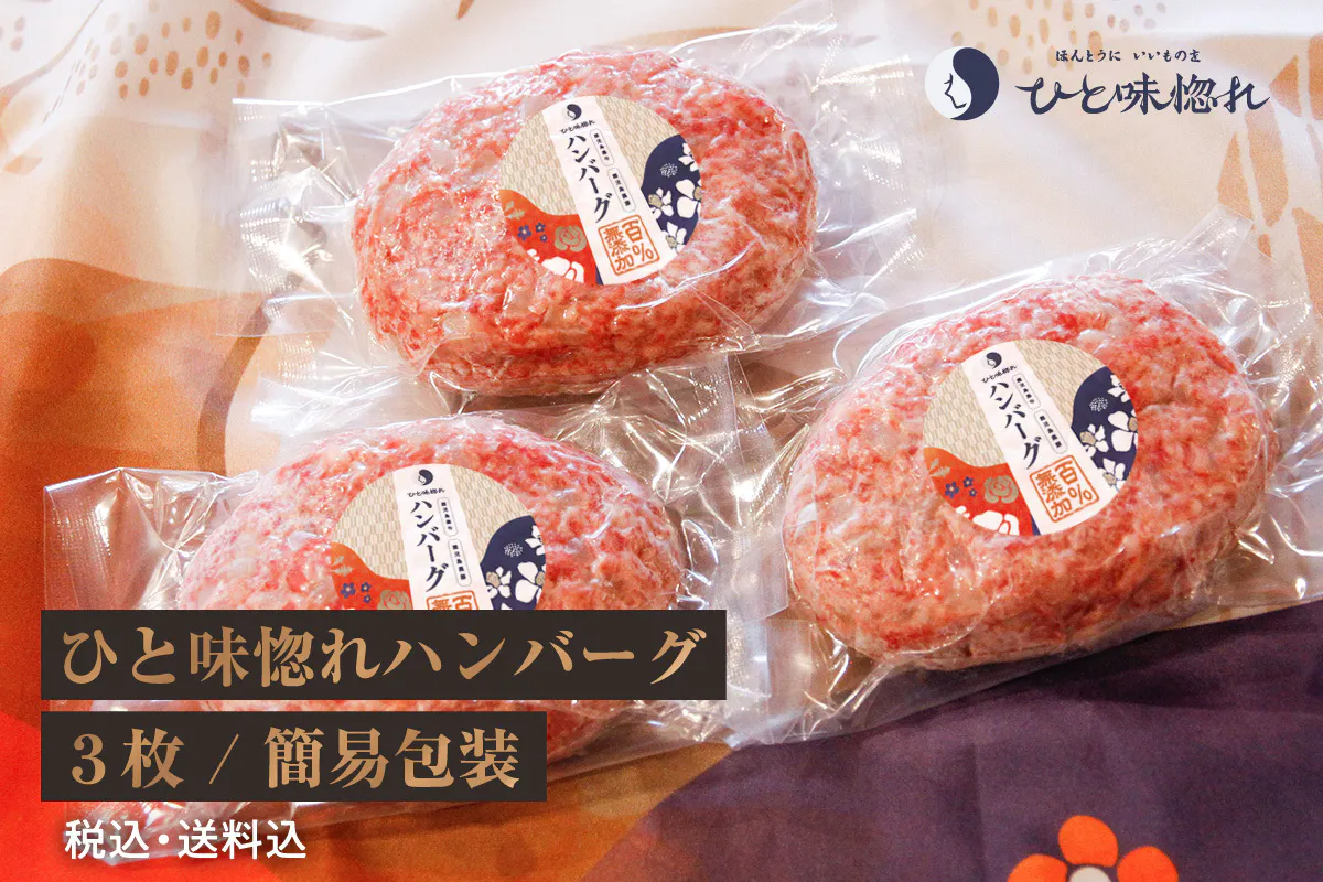 ・ひと味惚れハンバーグ3枚を簡易包装にてお届けいたします。