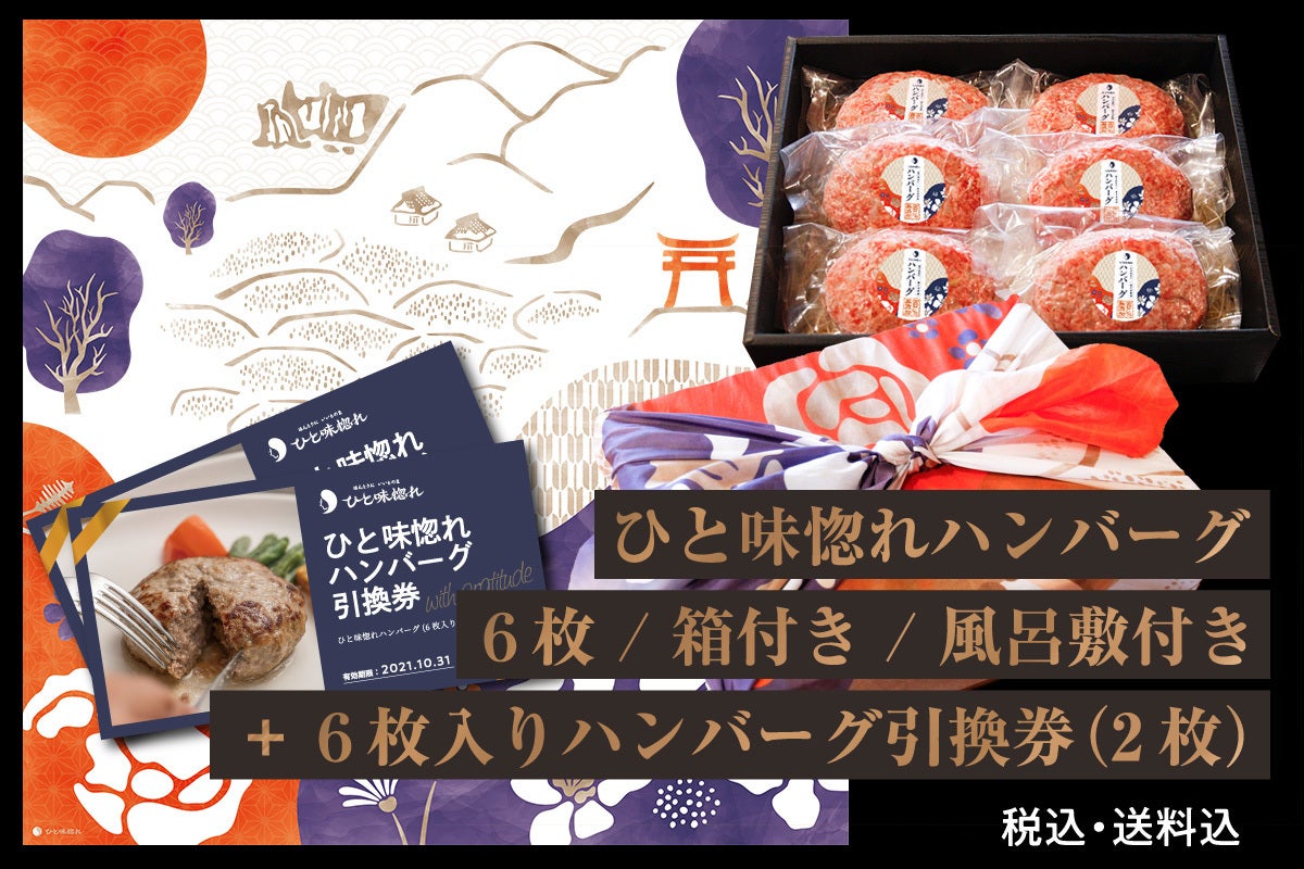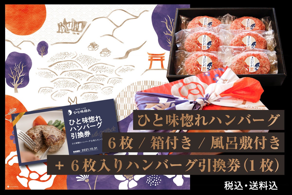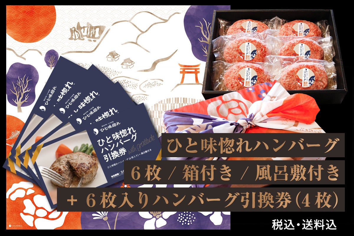 ④ ひと味惚れハンバーグ 6枚(箱付き)+ オリジナル風呂敷 / 8,000円(税込・送料込)