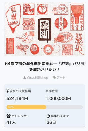 お陰様で本日、パトロン様が41人を越え、目標金額も52%まで到達しました!