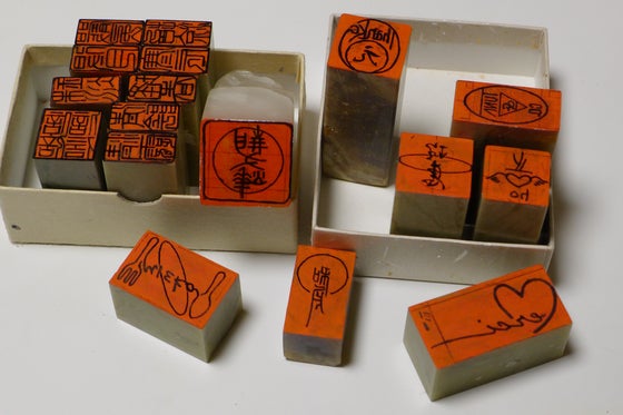現地では工房と同じ設備は望めないと思われるので、デモでは転写部分はせずに、転写し終わった印材を幾つも持ち込んで、それを游刻して見せるという方法を取ります。
