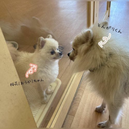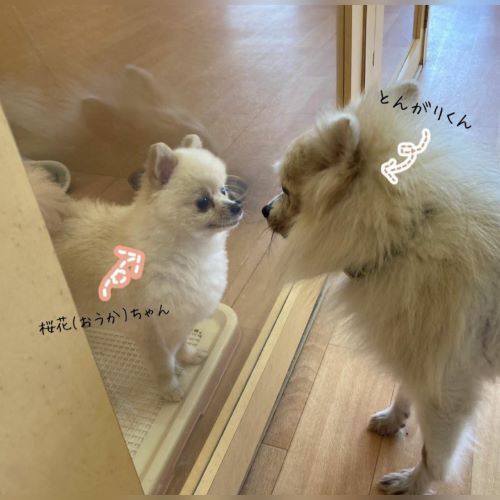 最近保護をした同じポメラニアンの桜花(おうか)ちゃんと並ぶと、このとおり。