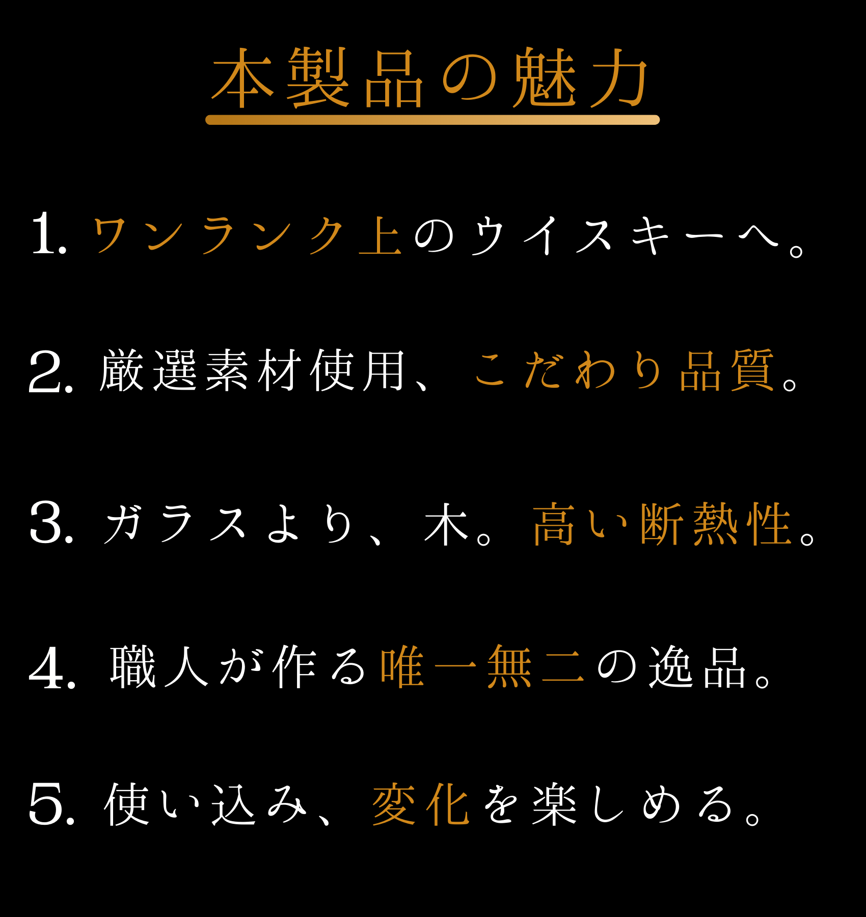 心を込めて作られる贅沢なオークウッドタンブラー、ウイスキー愛好家の方にぜひお試しいただきたい逸品です。