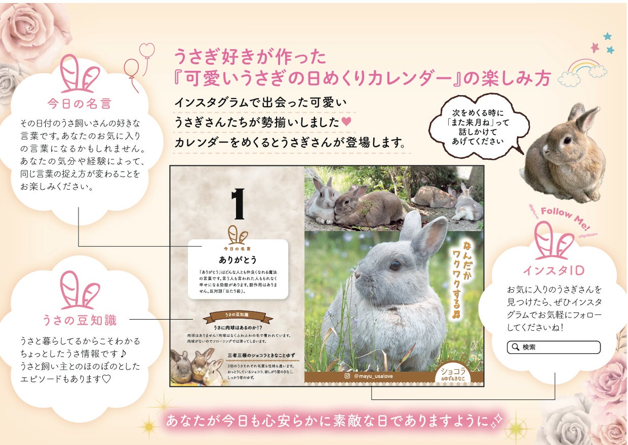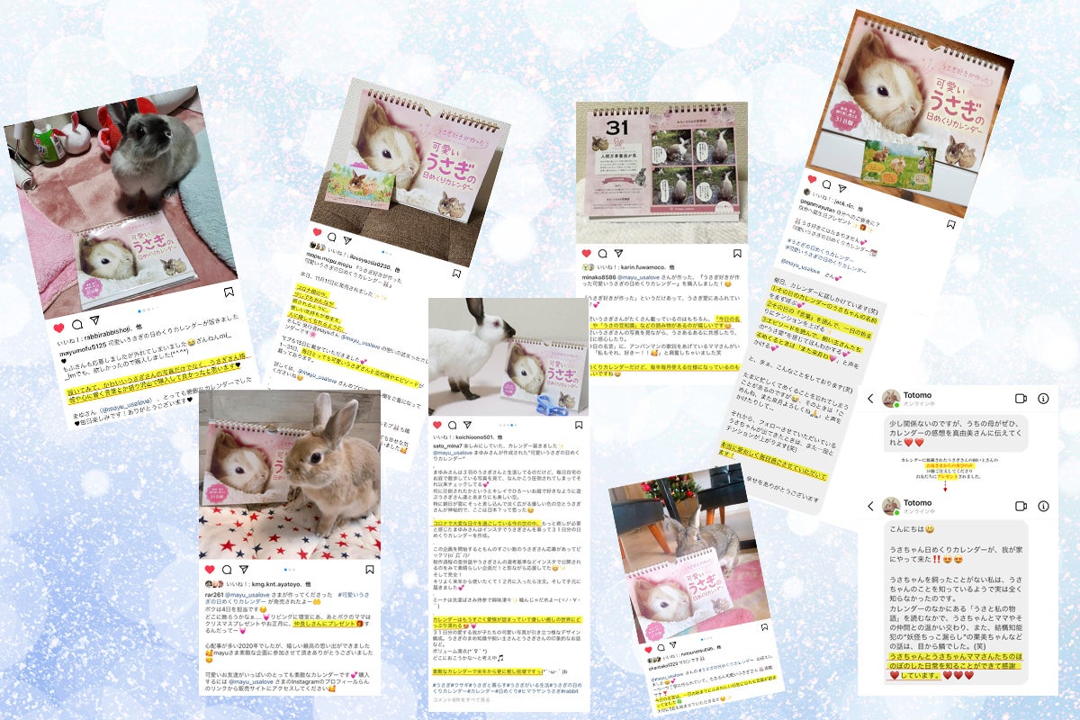 昨年製作した第1弾「可愛いうさぎの日めくりカレンダー」で「癒された」、「笑顔が戻ってきた」、「疲れが吹っ飛んだ」と多くの声をいただいたのは、私にとっても大きな支えとなりました。